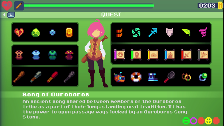 A narrative-driven game, Phoenotopia is ripe for spoilers. I’ll crib from Nintendo’s game page – “Join Gail, a simple villager, who must heed the call for adventure when a great star ship appears in the night sky and abducts all the adults.” It’s less about lengthy monologues and more about quick dialogue. Many characters allow the story to advance in satisfying ways, even if it’s a little slow to get going.