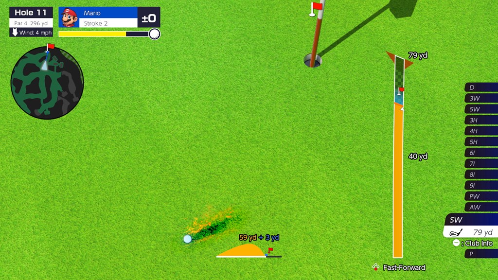 As the title reveals, Super Rush has a heavy emphasis on speed. Even if you aren’t playing speed golf, battle (and the lone bit of cross country) still has you racing across the fairways, though you can disable it in the former. While it might go against the grain, it can certainly work when the controls are responsive. Being the titular focus, Nintendo nailed all the speedy aspects, right? Not so fast.